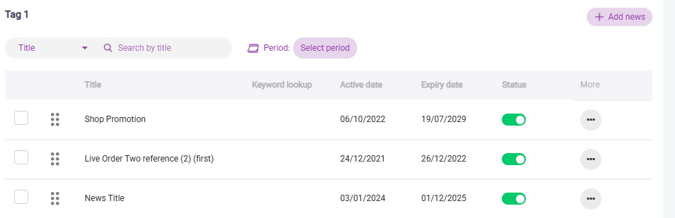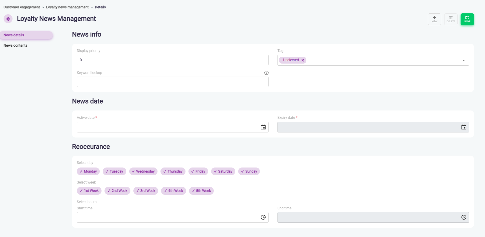 Businesses can manage content across the following news types: