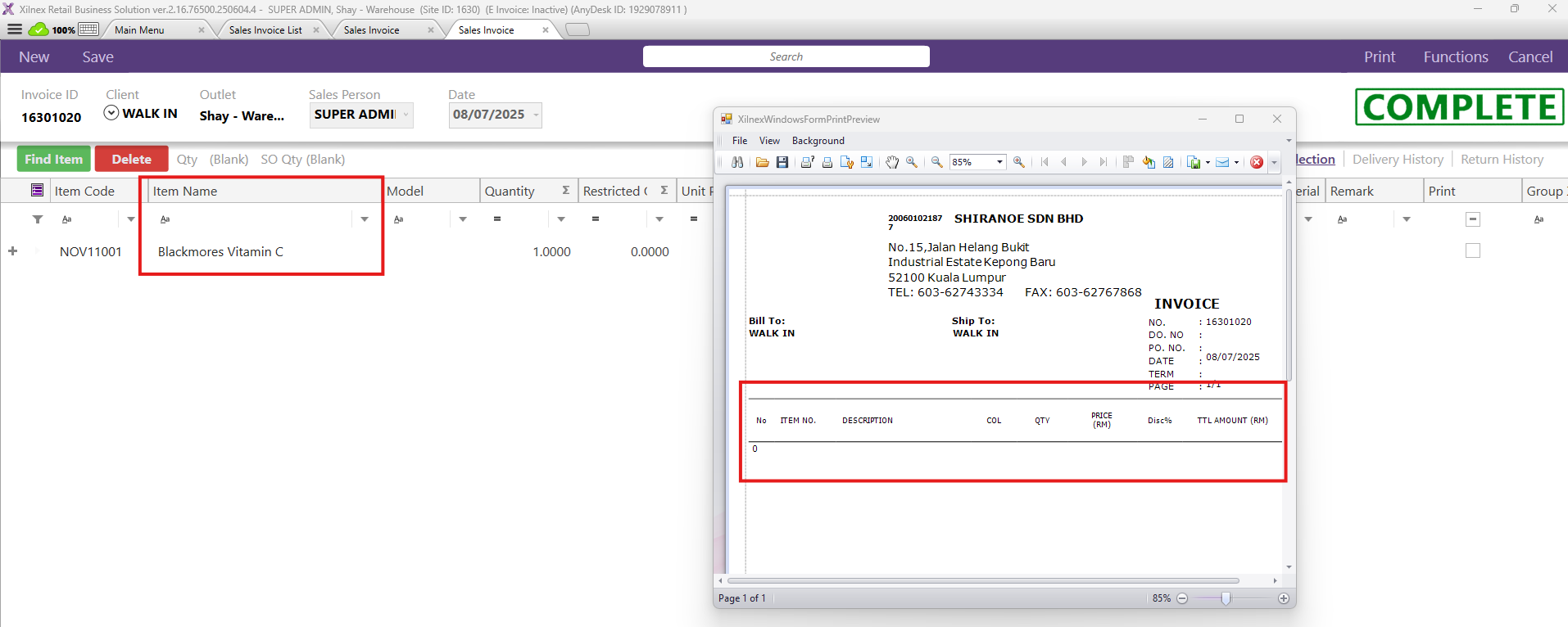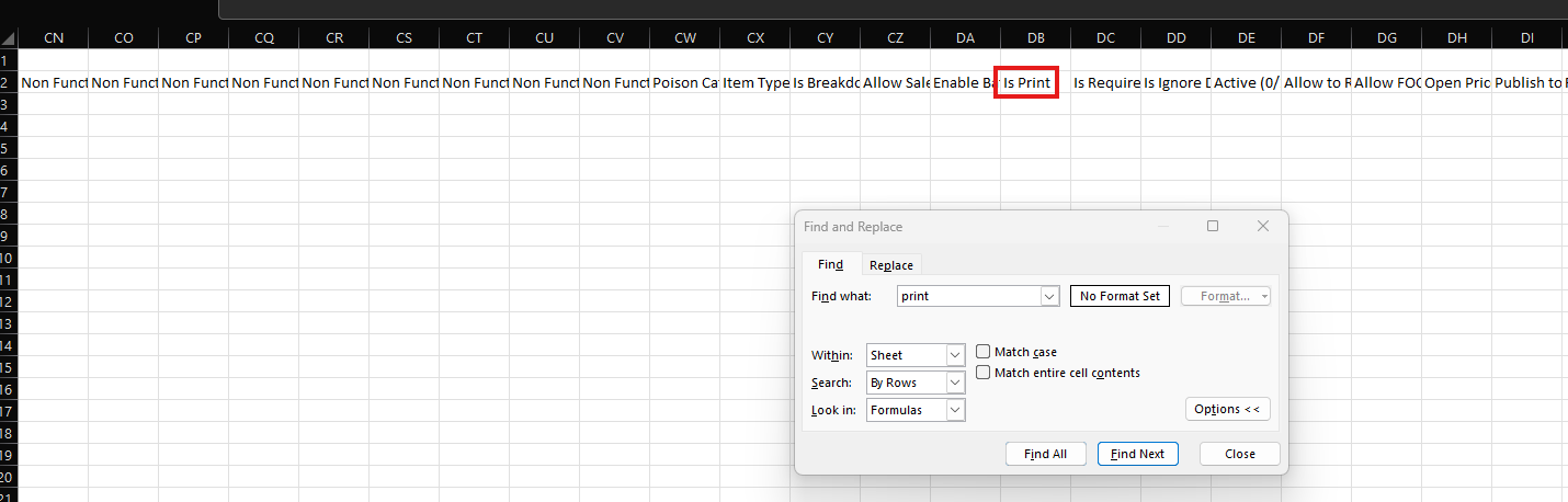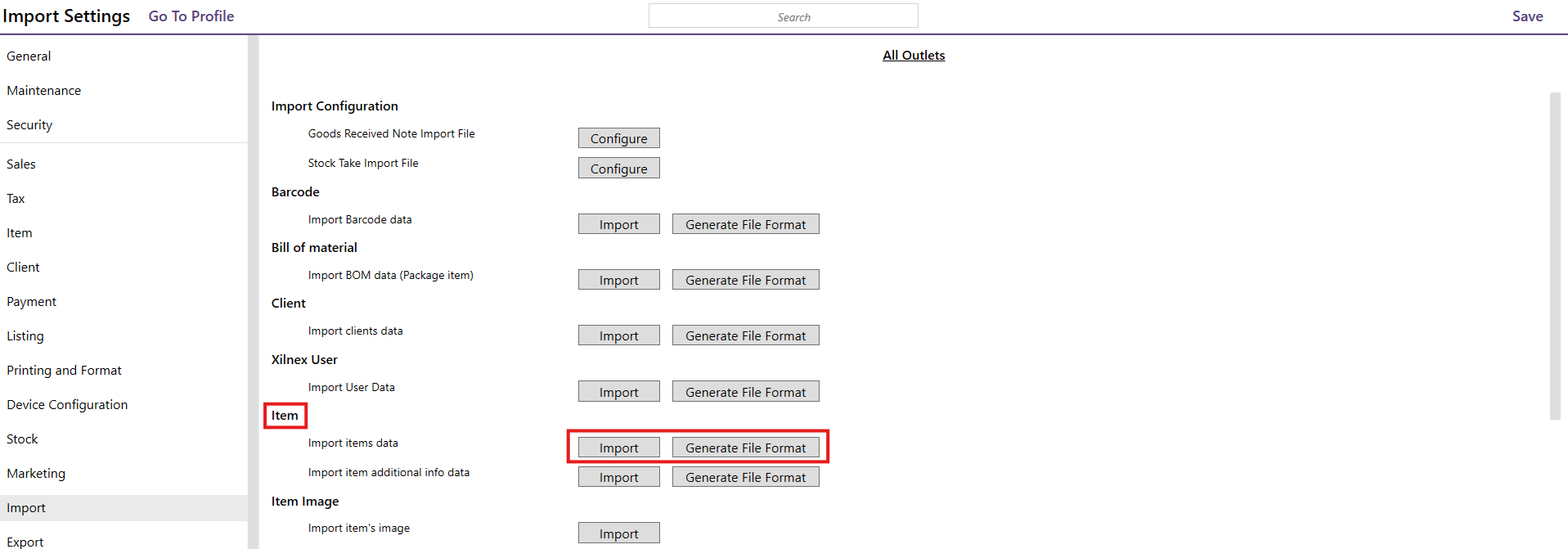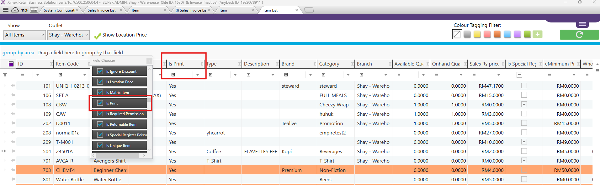c. Edit the Import File Format by key in the Item code and Key in (1 - Enabled setting, 0 - Disabled setting) field 'Is Print'