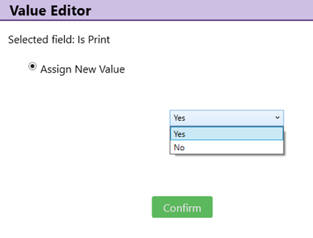 d. In the Value Editor page, you may choose YES and click Confirm to set the affected item.