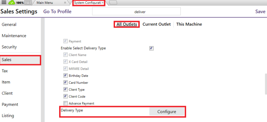 3. In the [All Outlets] tab, look for the 'Delivery Type'