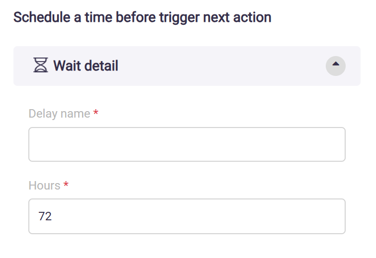 - A delay duration (hours or days) is set after an event before the journey moves to the next step.