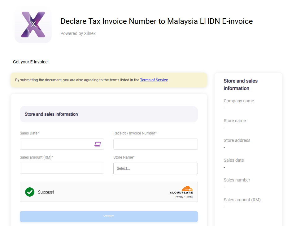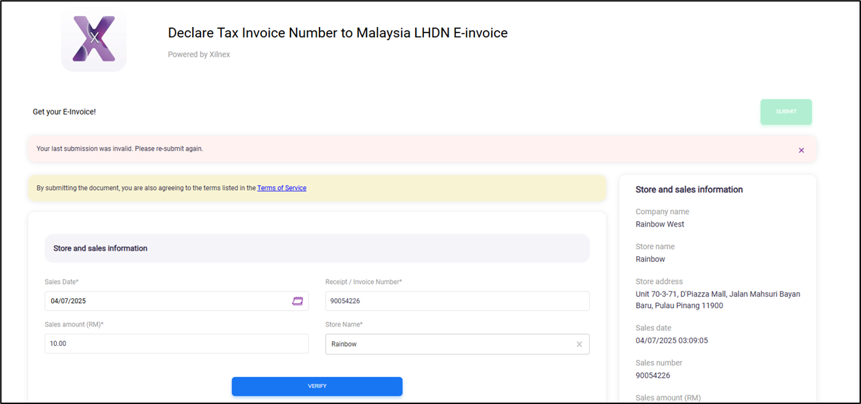 The E-Receipt Portal is a web-based page provided by Xilnex that allows buyers (taxpayers) to claim a transaction and submit it to IRBM as an Individual E-Invoice for validation.