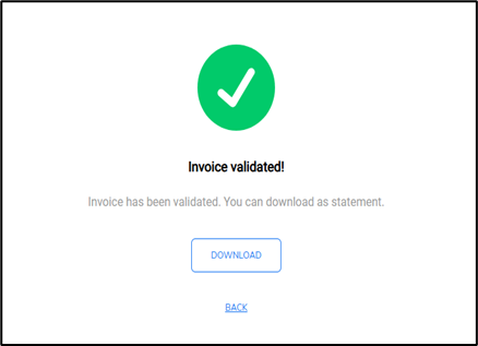 If IRBM validates the submission, the portal will show “Invoice Validated!”. Select Download to download the e-Invoice PDF, or select Back.