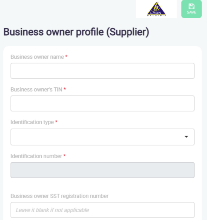 Business owner's TIN * | Tax Identification Number (TIN) registered with LHDN. |