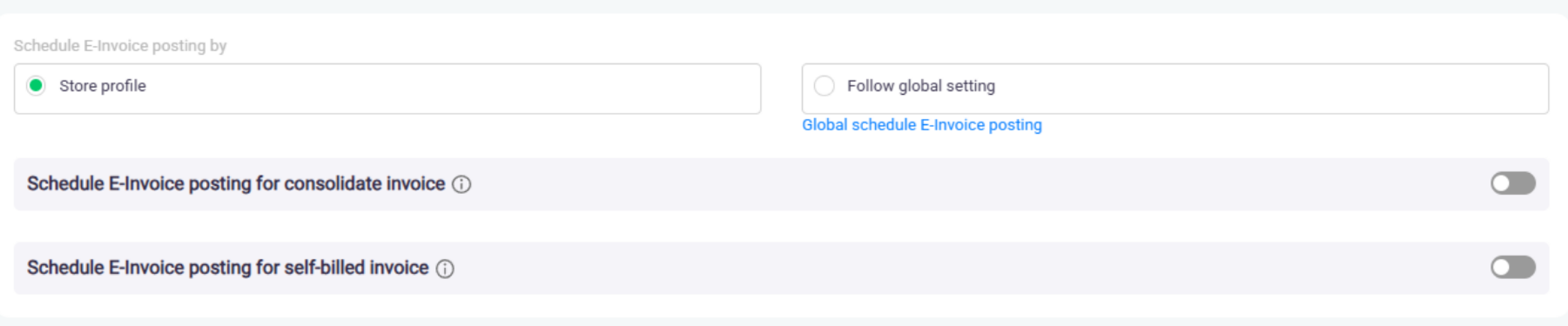 These two schedules can be configured at the store level, allowing each outlet to manage its own timing for E-Invoice submission
