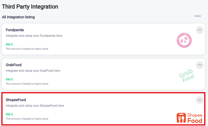 - Once done setup, the ShopeeFood cart will be shown on the Third Party Integration List