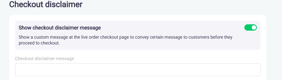 1. Toggle the Show checkout disclaimer message switch to ON