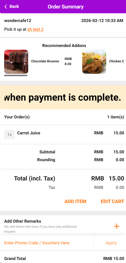2. Example message: "Your order will be processed once payment is completed."