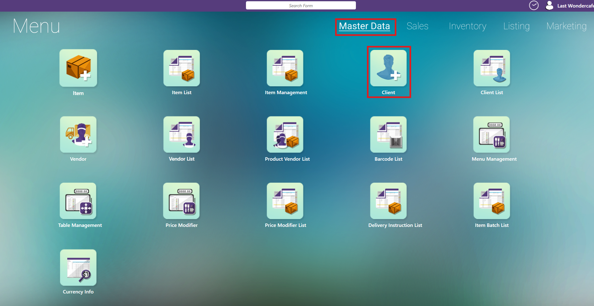 - From the menu, navigate to the Master Data and Click on the Client form.