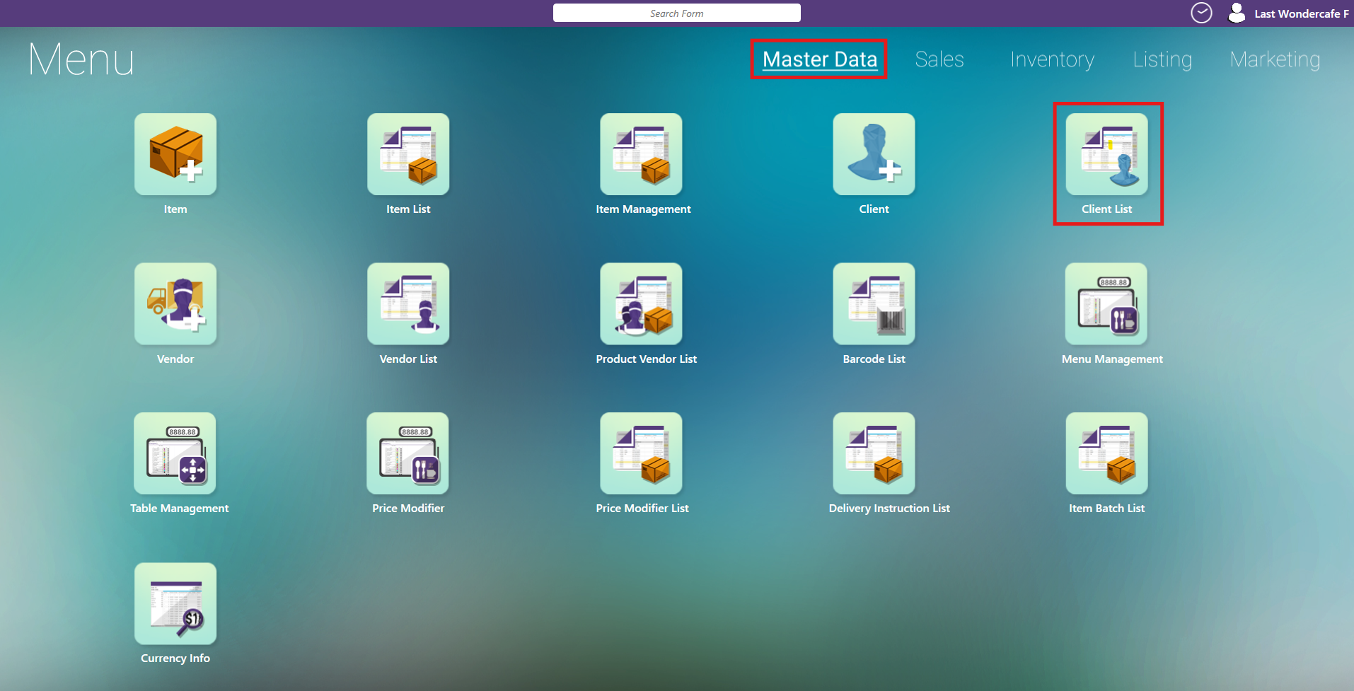 - From the Main Menu, navigate to the Master Data and click on the Client List.
