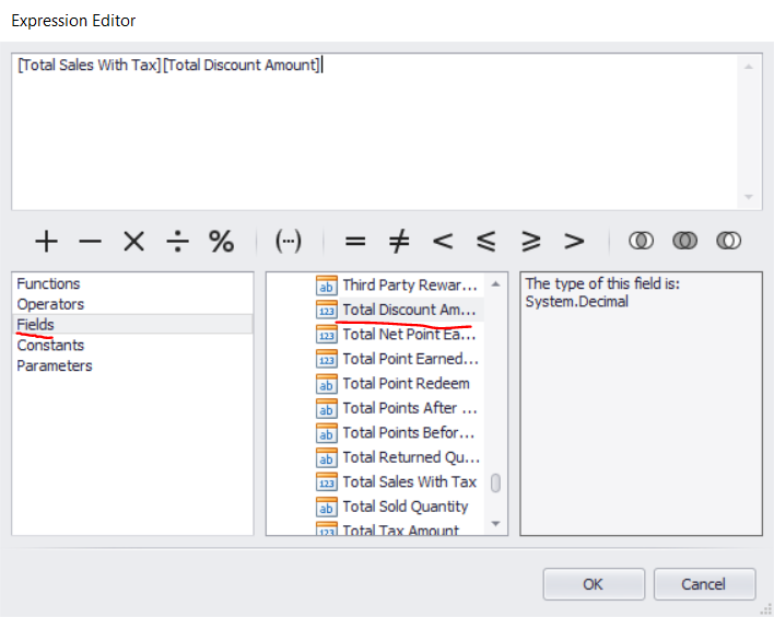 - So the formula in this case we want to use is “Total Sales with Tax” + “Total Discount Amount”