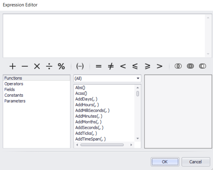 - This should open the expression editor above and you may start keying in the required fields for the formula