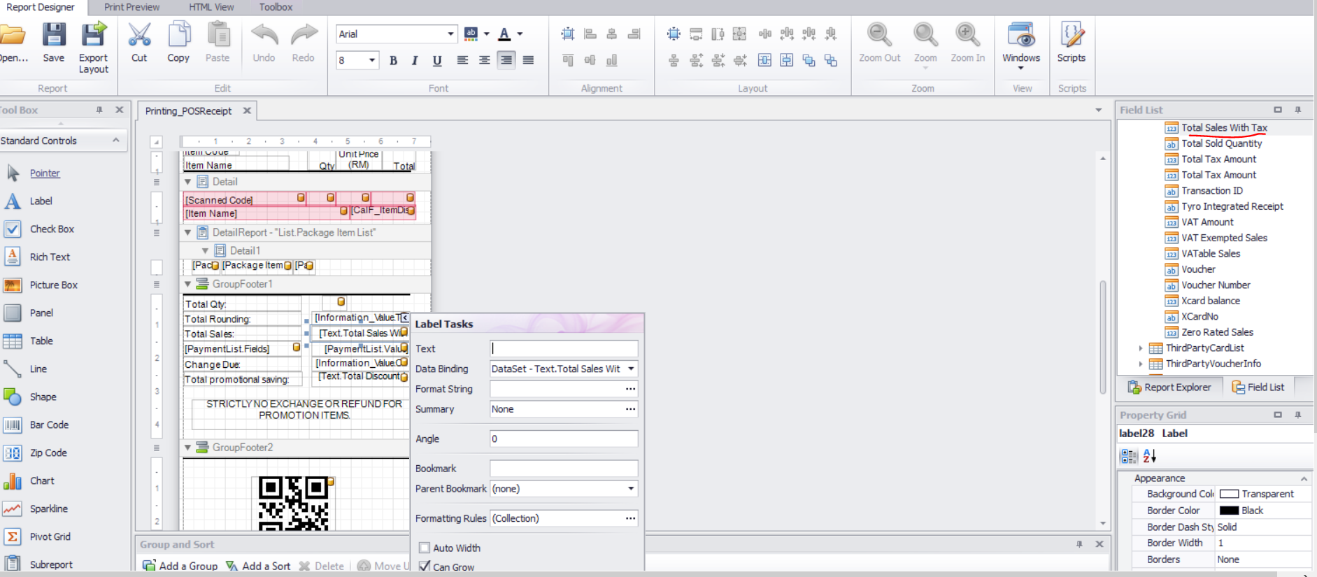 - You may then add a new label in the format to use the following calculated field and then save the whole printing format to finalize the changes