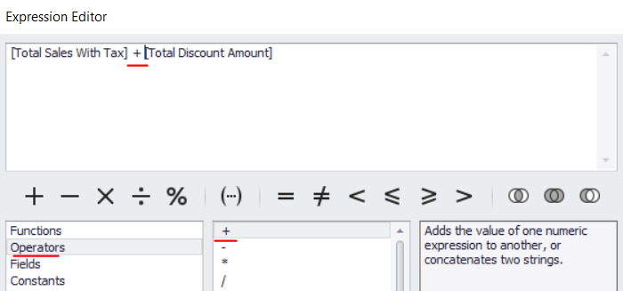 - Add the operator of “+” in between the two fields
