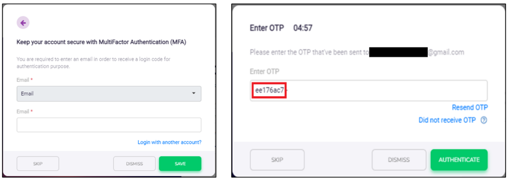 - Enter the OTP (e.g., 123456) and click [AUTHENTICATE].