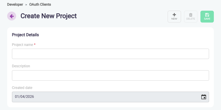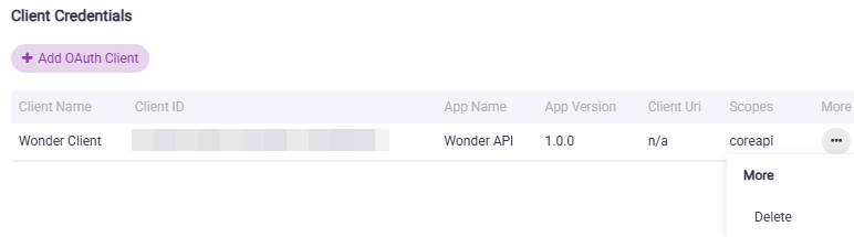 - Once the Project is saved successfully, under the Project, select Add OAuth Client to create a client credential.