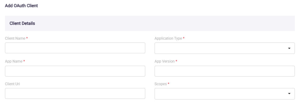 | Client Name | A unique, descriptive name for this set of credentials (between 5 to 50 characters) |