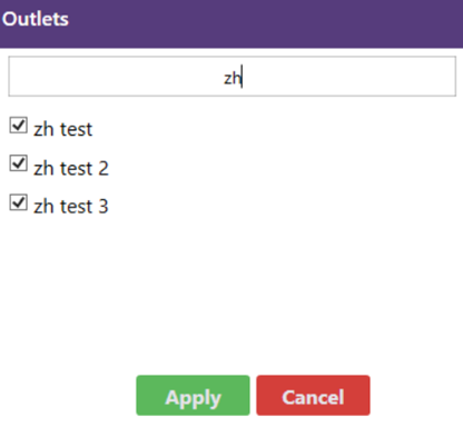 - Supports partial keyword search, so entering "zh" will filter all outlets containing "zh" in their name.