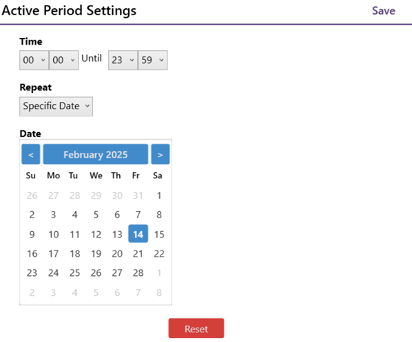 - Example: Breakfast menu from 7:00 AM – 10:30 AM, Lunch menu from 10:31 AM – 2:00 PM, etc.