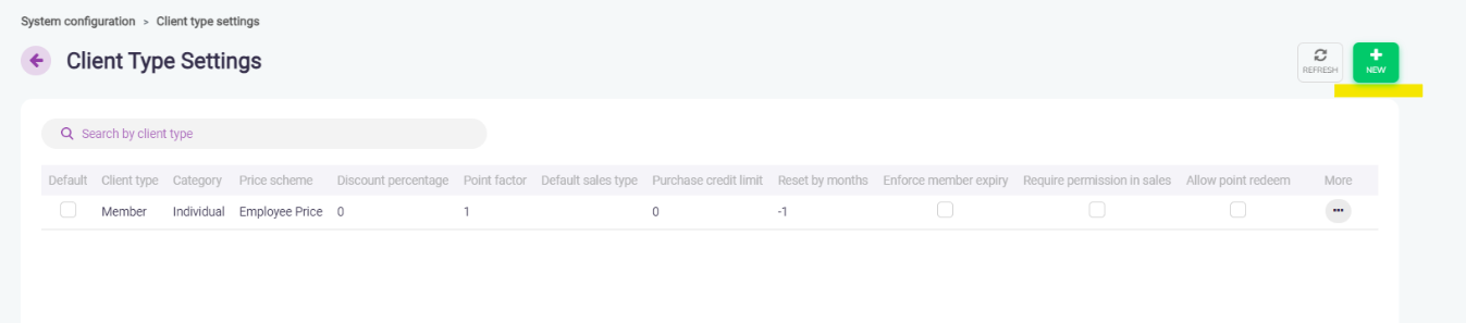 If no default client type is set, the system will automatically assign “NEW” as the client type.