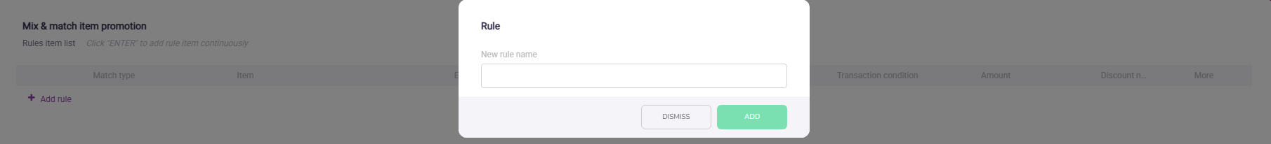 Deduct price (No negative) | Reduces item price by fixed amount but ensures price never goes below zero. Notes: Prevents negative subtotals for item in transactions. | RM10 off, but if item is RM8, final price = RM0. |