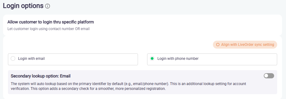 - Enable this only if you previously allowed Email login and later switched to Phone Number login.