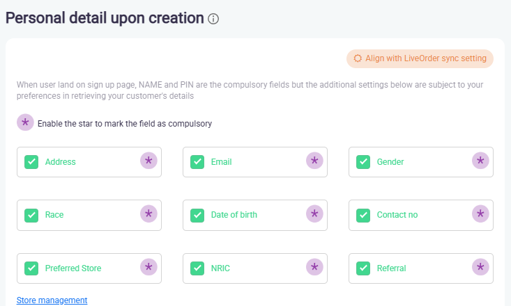 - You can customize which pieces of customer information are collected during registration. Available fields such as: