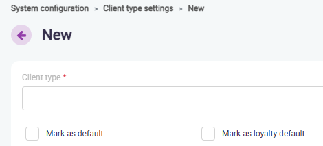 To define a default client type for your loyalty members. Example: Name it “Loyalty” or any preferred client type name. Once a user successfully signs up through the Loyalty program, the system will automatically assign this default client type to ...