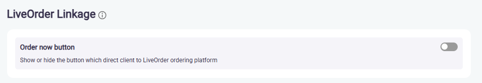 Enable this option to display the “Order Now” button at the top right of the Loyalty Lite page. This button directs clients to the LiveOrder ordering platform.