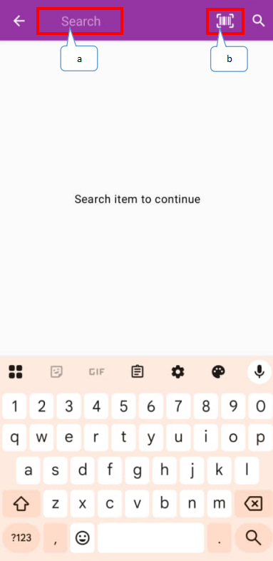 - Search: Type in the item keyword (item code, item name, alternate lookup, item ID, barcode lookup), or scan using a barcode scanner