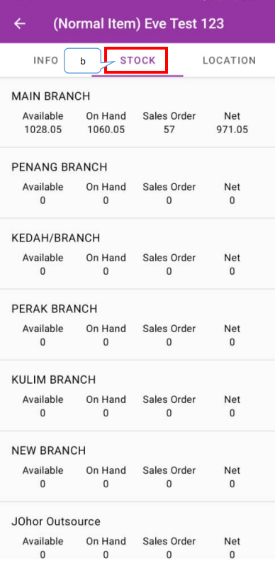 - Stock: Displays the stock balance of all allowed outlets of the current login user.