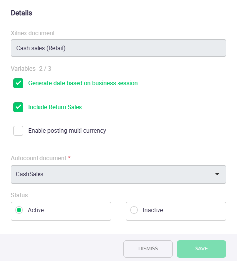 - 1. In the list, find the document you want to integrate (e.g., "Cash sales (Retail)" or "Purchase invoices (Receive)")